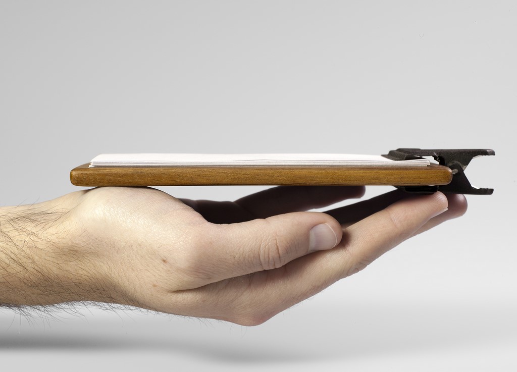 Extremely high-tech, ultra miniaturized, and very secure, the Psychic Mini Clipboard (PMC) has the appearance of a simple wooden board (Walnut) and is approximately 6" (15 cm) long, 2.5" (6,5 cm) wide and 1/4" (0,7 cm) thick and weighs only 65 grams (2¼ ounces). Your audience can examine it and never discover its secrets!