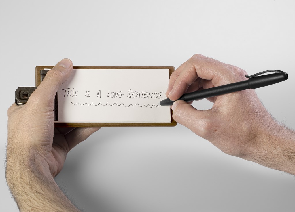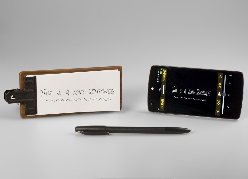 The writing-sensitive area is about 75% of the surface of the paper provided. This writing area is managed like a center tear effect. Use any paper or small notepad in the correct format. The pen, which looks like an ordinary pen, has a battery life of 500 hours for writing (refillable ink and batteries). There is no potential double pressure issue with your fingers or thumb.