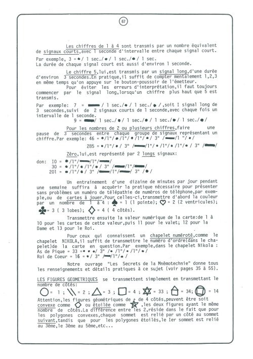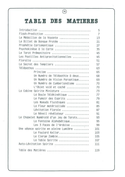 Dans ce document de 121 pages, il relate par le détail 28 effets de Mentalisme et de magie paranormale. Pouvant constituer un véritable numéro complet, il allie de nombreuses techniques connues : fil invisible, colles spéciales, pliages de papiers, électronique de pointe, transmission codée, etc.