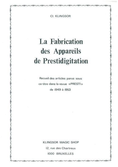 LA FABRICATION DES APPAREILS DE PRESTIDIGITATION - Claude Klingsor