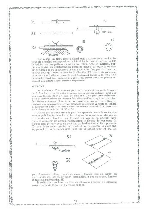 Rien que le chapitre sur les métaux vaut le prix de l'ensemble : le travail des tôles de fer-blanc, de zinc, de laiton, de cuivre rouge, d'acier, d'aluminium ou de plomb sont méthodiquement abordés ! Et que dire des descriptions sur le sciage, de soudage, de boulonnage, de rivetage, de pliage, de façonnage etc !