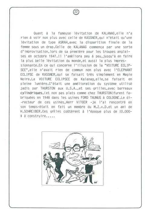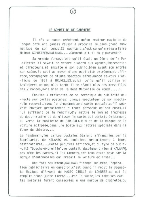 Tiré en 1993 à 60 exemplaires pour le 27e Congrès Français de l'Illusion afin d'illustrer une conférence sur le magicien allemand Kalanag. Ce livre de 43 pages n'a plus jamais été réédité.