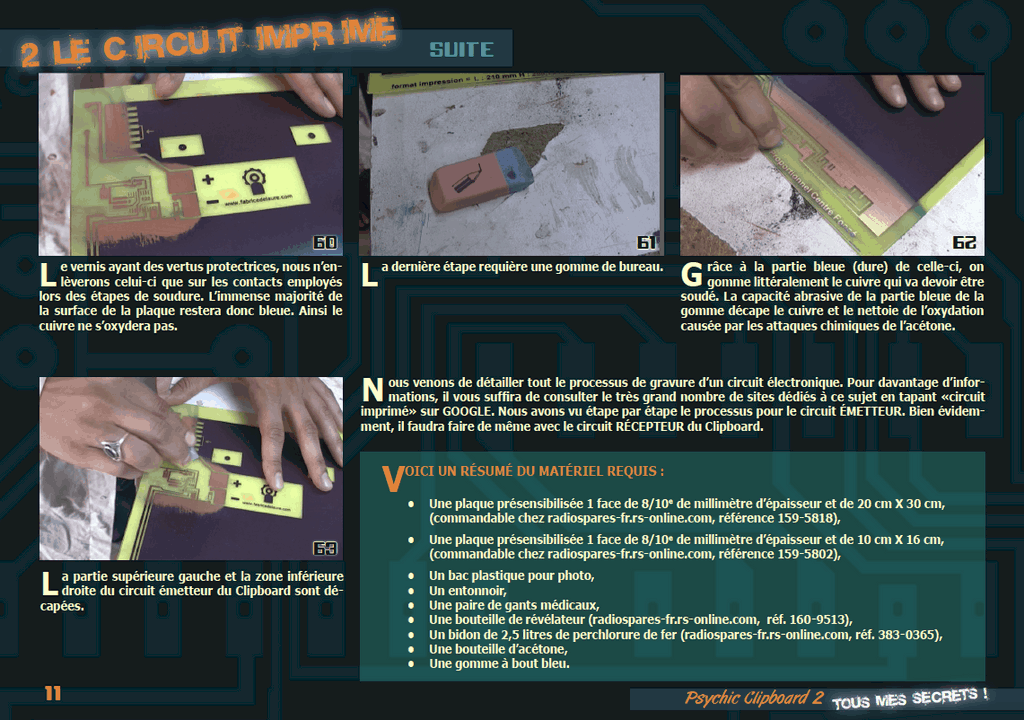 - Fabriquer un circuit imprimé étape par étape (insolation, révélation, gravure, finitions),